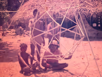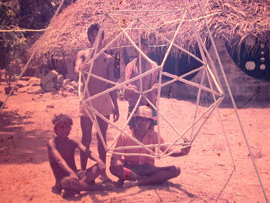 "Joss' young workers with geometric frame," 1972, web.auroville-archives/ark/64641/133942