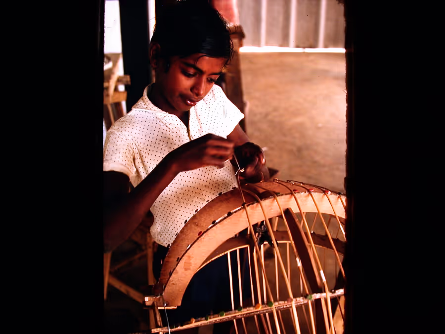 Shankar tying cane ribbing, 1975-77
