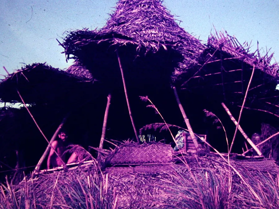 "Bryan looking down from Aurobateau opening," 1972, web.auroville-archives/ark/64641/134317