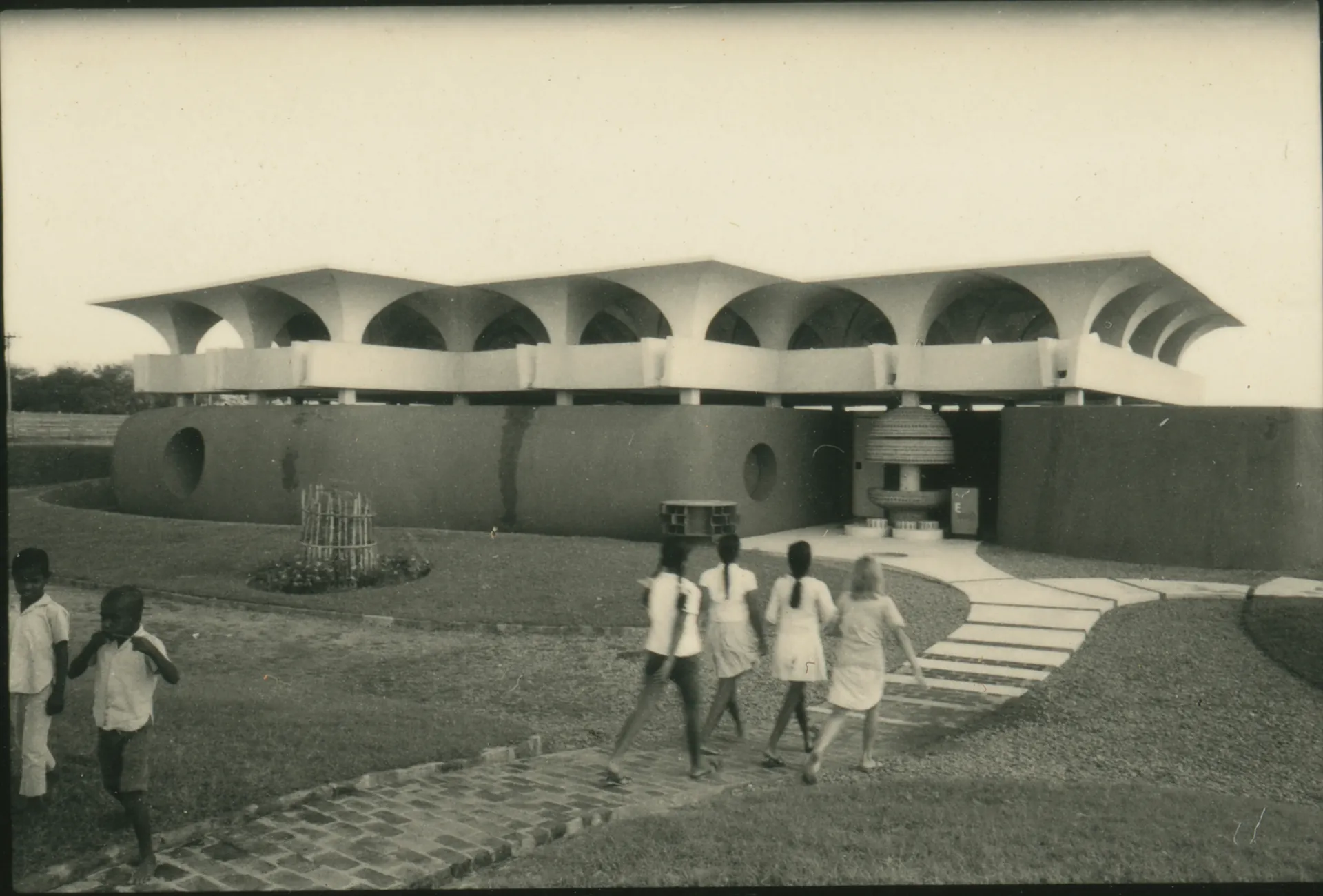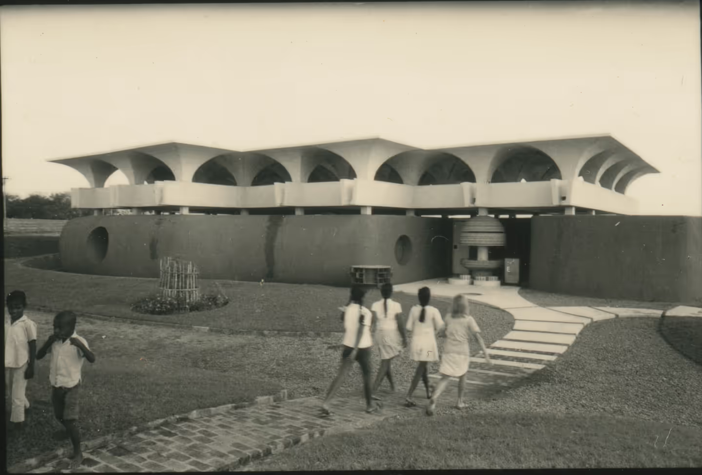 "Last School building - children walking to school," null, web.auroville-archives/ark/64641/88220