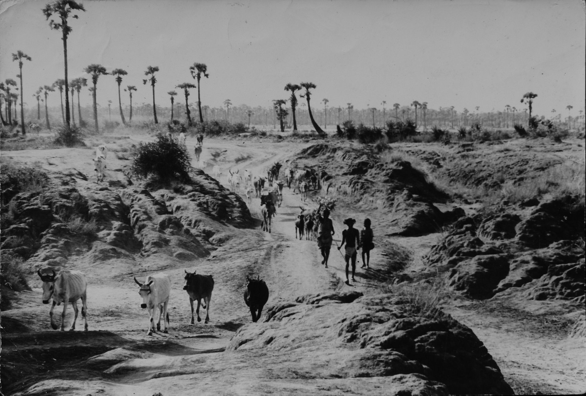 "Herd of cattle walking through canyon," null, web.auroville-archives/ark/64641/92224