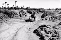 "Bullock cart on furrowed road," null, web.auroville-archives/ark/64641/92226