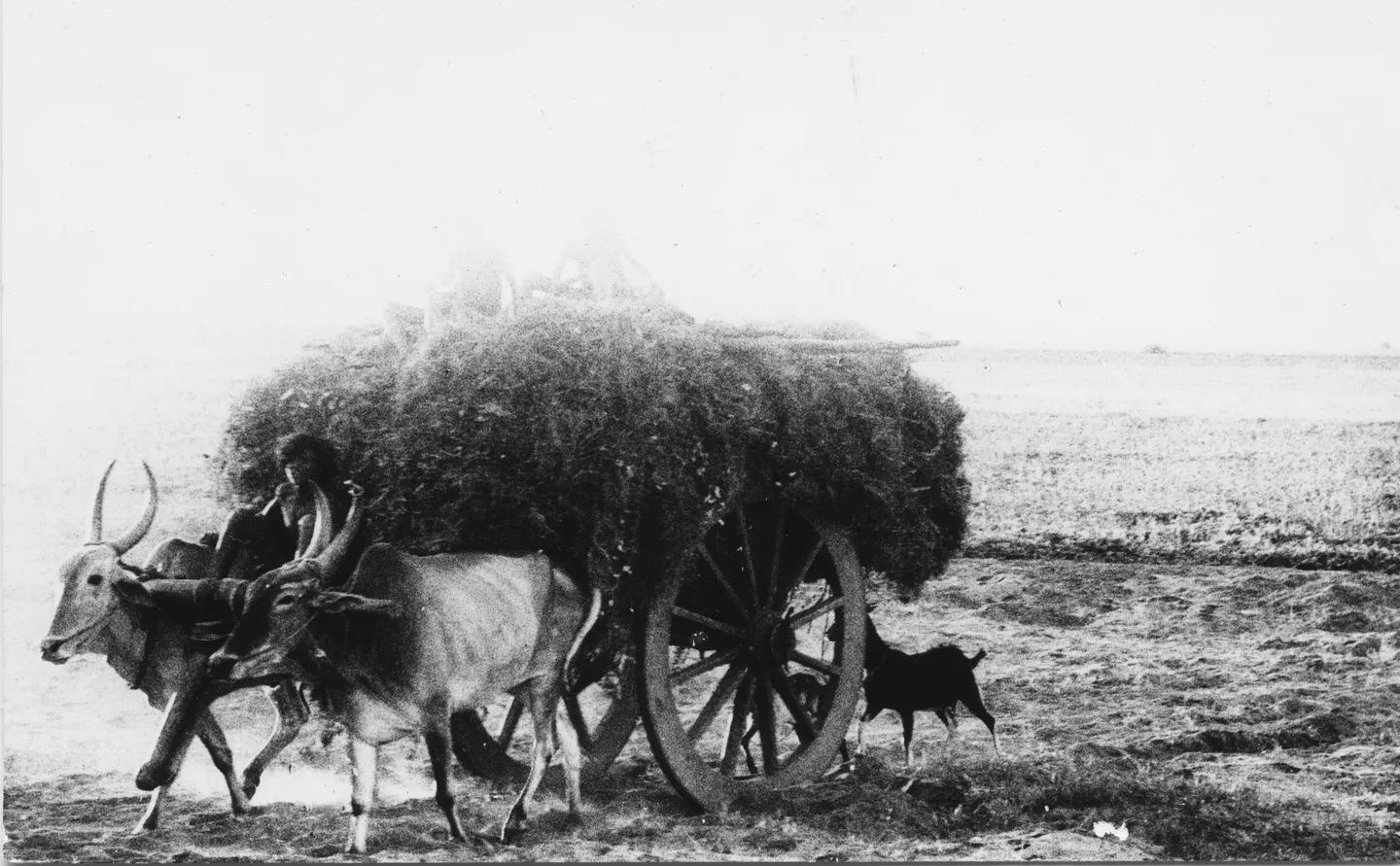 "Bullock cart with load, driver and goat," null, web.auroville-archives/ark/64641/92472